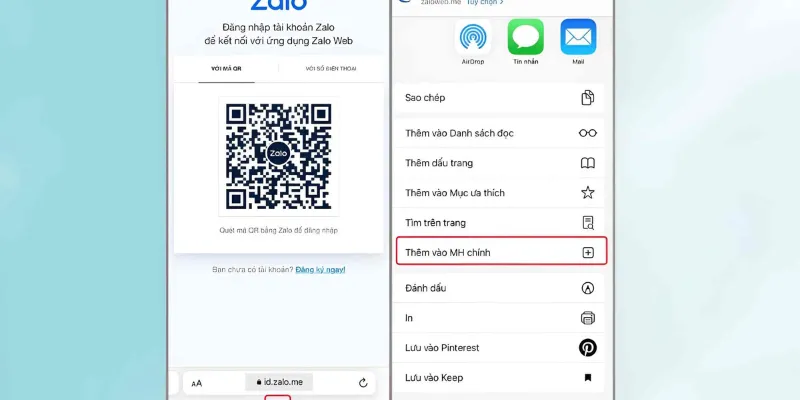 Để tăng tính tiện lợi, bạn có thể thêm trang Zalo Web vào màn hình chính bằng cách nhấn biểu tượng chia sẻ rồi chọn “Add to Home Screen”. Việc này sẽ tạo một biểu tượng giống như ứng dụng trên màn hình chính, cho phép truy cập Zalo Web nhanh chóng chỉ bằng một lần chạm, gần giống như sử dụng một ứng dụng riêng biệt. Tuy nhiên, cần lưu ý rằng đây vẫn là phiên bản web với một số hạn chế nhất định.