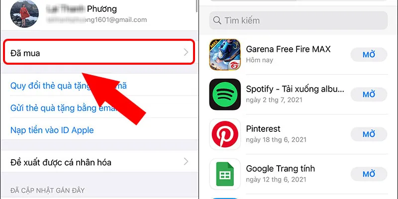 Truy cập danh sách ứng dụng đã mua và tải về